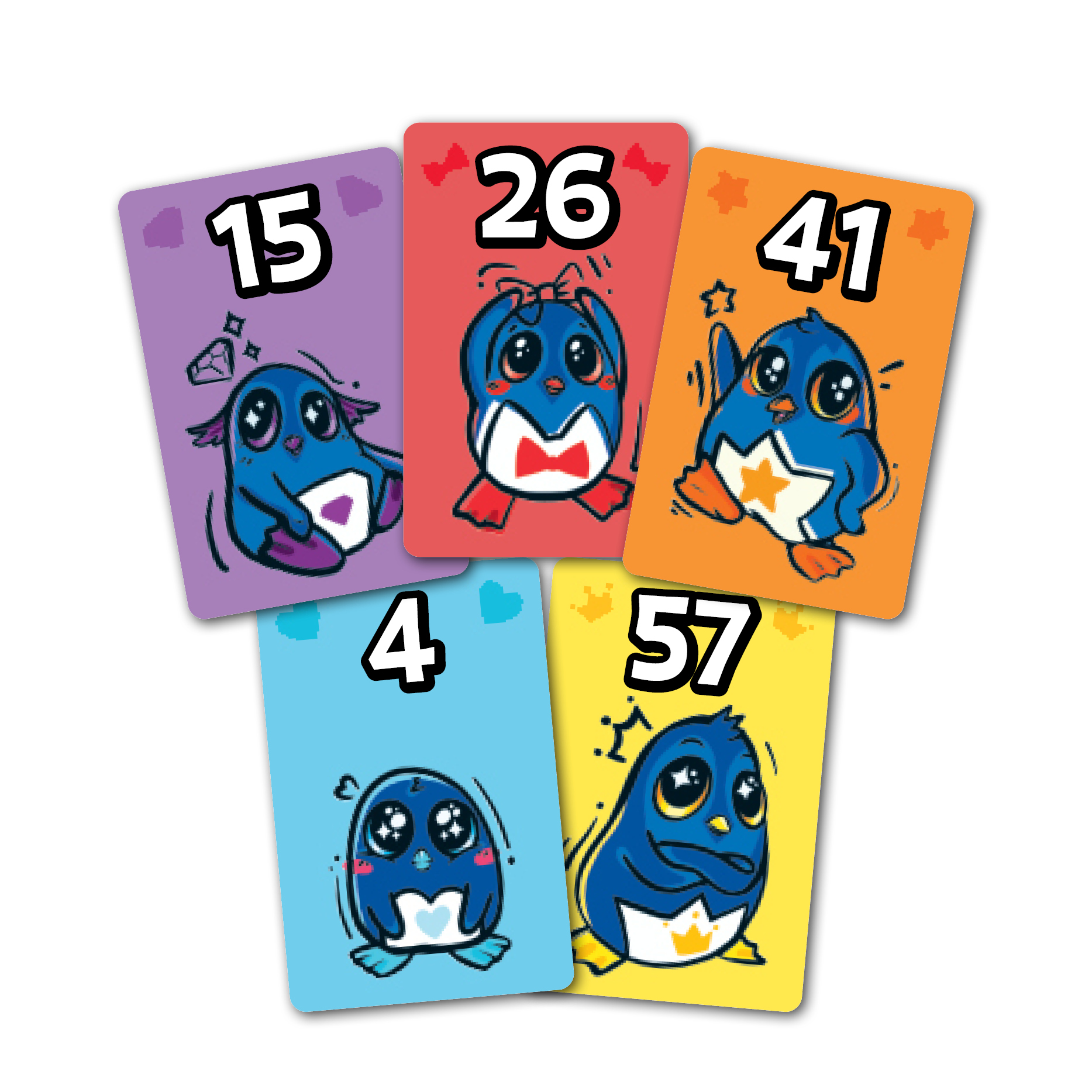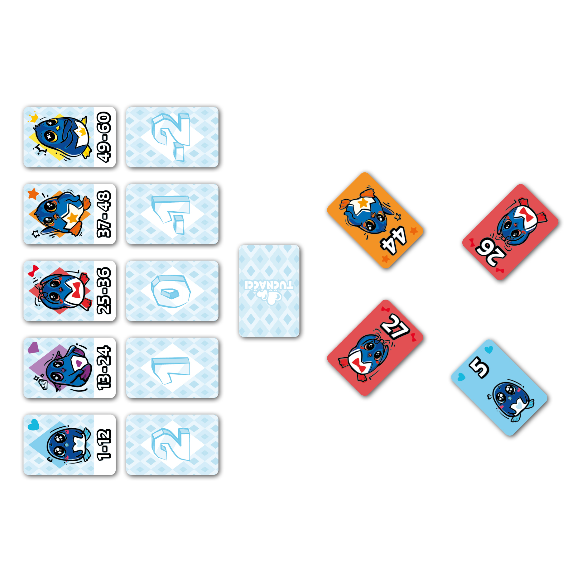 Podrobný popisVe hře Tučňáčci se každý hráč snaží přilákat co nejroztomilejší tučňáky: Čím jsou menší, tím jsou roztomilejší. Háček je ovšem v tom, že tučňáci vždy jdou za většími tučňáky. Kdo bude mít na konci nejvíce bodů roztomilosti, zvítězí.Hra obsahuje:60 karet tučňáků: modří (1–12), fialoví (13–24), červení (25–36), oranžoví (37–48), žlutí (49–60)5 karet barev v pěti různých barvách5 karet hodnot (2, 1, 0, -1, -2)